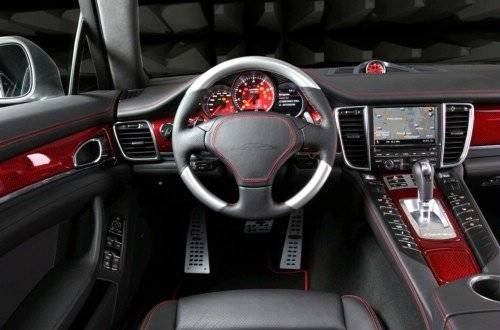 在內飾中,SpeedART為Panamera換上帶有F1風格換檔撥片的運動方向盤,顧客可以選擇鋁、木材或碳纖維裝飾。此外PS9-650還擁有碳纖維裝飾面板、特制的地毯、采用手工縫合的門板和座椅,以及經過調整的儀表盤等。 內容來自123456