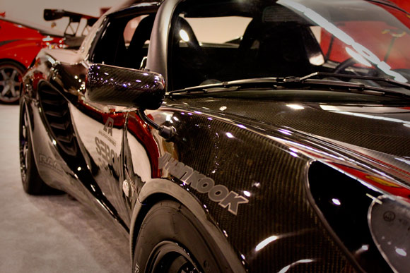 One of our most popular articles ever was on Jimmy Wong’s all raw carbon fiber Lotus Elise. While attending SEMA this year, Seibon, an aftermarket parts manufacturer that specializes in carbon fiber, also had an all carbon fiber Elise in their booth: