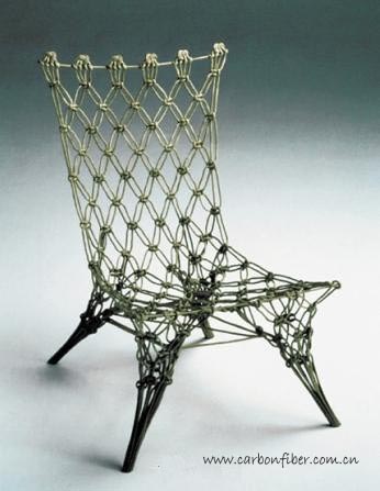 萬德斯說,這個以結飾手藝開始的創(chuàng)意想法,采用了椅子"實用、耐久、并隨時間流逝不會貶值"這樣一種格式。這把椅子根據(jù)傳統(tǒng)編結工藝,用內(nèi)裝碳纖維、外裹"aramid"(芳族聚酰胺)編織套的繩子進行編織,形成這種柔軟的、難以辨認的椅子形態(tài),然后將它浸入雙氧基樹脂溶液中,經(jīng)環(huán)氧處理后,把它懸掛在一個框架上,扯出八個角以構建椅子形態(tài),再在一個高溫房間內(nèi)烘干,繩子在高溫下晾干后變得又堅固又結實。手工和高科技的結合產(chǎn)生了一把幾乎象鐵一樣堅固的椅子,雖然看起來很靠不住。