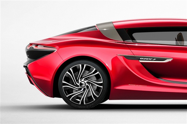 該車外身采用與Quant E不同的配色方案,還具有更大尺寸的外后視鏡。Quant F采用了鷗翼門設計,大尺寸的車門方便車內的四名乘客上下車,整車長5257mm。