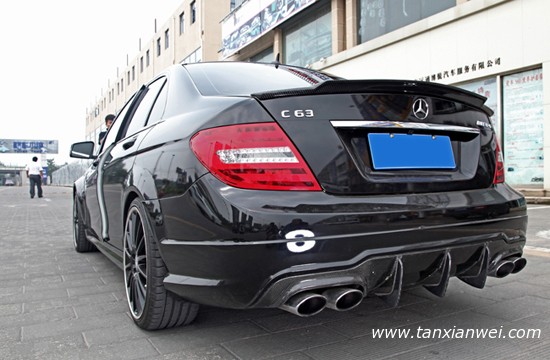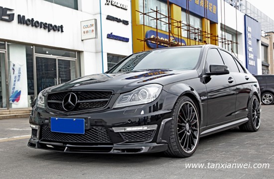 性能車、超跑,近幾年來越來越受到了大家的青睞。因為它們與生俱來就擁有最完美的外觀設計和更高級別的動力調校,然而,十分高昂的價格注定它們只是屬于一小部分人。奔馳C63 AMG相信對于廣大車迷來說毫不陌生,在普通車迷心中也許它只是一款外觀帥氣、動力強勁的性能車型,而在眾多奔馳車主心中,AMG更能代表著一種信仰。接下來將要介紹的這臺奔馳C63 AMG雖然改動并不大,但是幾處精致的點綴式改裝卻無疑是讓這臺車更加富有魅力。