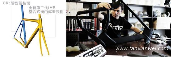 2007年SCOTT透過(guò)IMP模內(nèi)成型技術(shù),推出僅有790克重的ADDICT車架,在成功推出Tube-To-Tube管對(duì)管接合技術(shù)的同時(shí),SCOTT 團(tuán)隊(duì)立即致力研究消除皺摺的技術(shù),IMP模內(nèi)成型技術(shù),完全解決傳統(tǒng)一體式成型,在內(nèi)側(cè)轉(zhuǎn)彎處造成的縐褶,所產(chǎn)生的嚴(yán)重強(qiáng)度問題。同時(shí)搭配管對(duì)管生產(chǎn)技術(shù),完美的再將碳纖領(lǐng)域再上一層樓,制造驚人的ADDICT的790克車架。 內(nèi)容來(lái)自123456