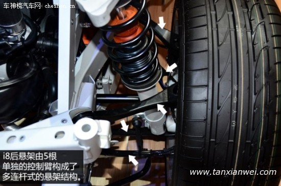 整個乘員艙的結構由多層碳纖維復合材料拼合而成,輕量化和高強度是它最大的特點,這樣的設計類似于F1賽車中駕駛艙的單體橫造結構(由碳纖維復合材料構成),而最終的效果就是i8的車身重量不到1.5噸。