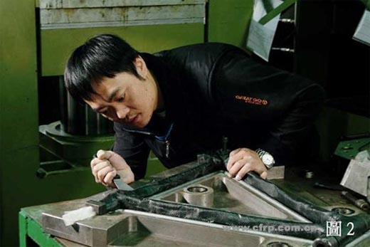 step2 碳纖維材料組合及入模熱壓 (就是這個工藝把碳纖維成型變硬)