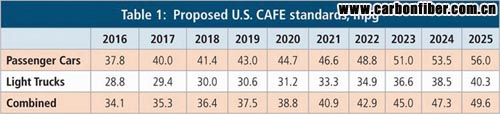在美國,國家公路交通安全管理部門(簡稱“NHTSA”)和環境保護機構(簡稱“EPA”)正在對“公司平均燃油經濟(簡稱 ‘CAFE’)標準”進行修訂,修訂后的標準將在2017~2025年間執行。CAFE標準是美國政府針對所有被售賣到美國的轎車和卡車而設立的汽車燃油效率標準。這一被提議的“2017~2025標準”,要求汽車的燃油效率要有大幅度的提升。