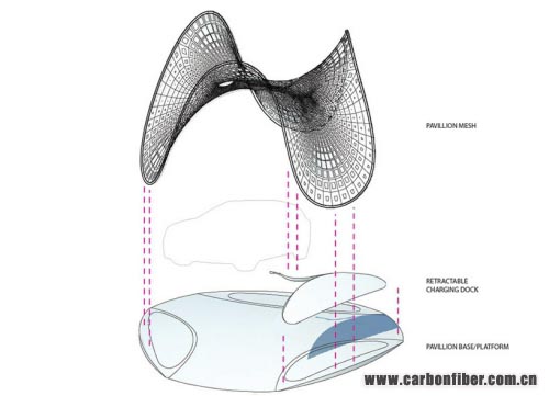 「純張力(PURE Tension)」是由Synthesis Design + Architecture,Buro Happold,和Fabric Images三家公司為沃爾沃的新款混合動力車型V60設計的一款充電車篷,組裝簡單,便于攜帶,采用膜網結構,可以通過車篷上面的太陽能電池板為汽車充電。