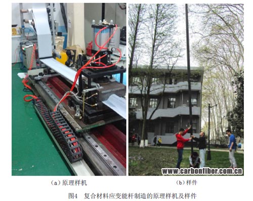南京航空航天大學在復合材料構件連續成型技術方案的基礎上初步研制了復合材料應變能桿成型的原理樣機(圖4(a)),并試制了20m長應變能桿(圖4(b))。
