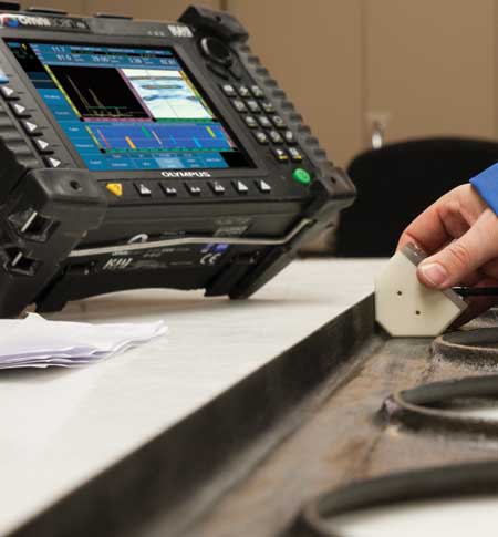 Olympus公司所推出的使用OmniScan® PA相控陣儀器的檢測方案可滿足最嚴苛的檢測需求。該方案使用合適的支架及包含16至64個晶片的曲線線性陣列,以序列方式發射脈沖,因而可在單次掃查中實現對整個圓角范圍的覆蓋。探頭的幾何構造可使所有超聲聲束與工件表面呈90°,即與平面檢測中的情況類似。使用OmniScan PA進行該項應用的主要優勢是僅用單次掃查便可檢測整個圓角范圍。使用一個典型的設置,便能以高達200毫米/秒的速度掃查一個圓角。