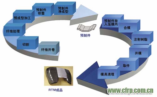 航空工業目前正采用樹脂傳遞模塑成型工藝(RTM),進行大型高強度結構件的生產。然而,其生產效率很低,有時還需大量的手工作業。在汽車的制造過程中,采用RTM工藝進行零部件的生產,主要是為了達到更好的視覺效果,并且只用于小批量生產的頂級轎車中。若能為量化生產開發出一條可靠的自動化RTM生產線,則纖維增強塑料(FRP)將能夠更加廣泛地應用于汽車高強度承重結構件的生產。