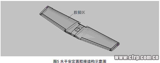 (6)水平安定面由上下蒙皮與翼梁采用二次膠接形成整體結構,升降舵蒙皮采用碳纖維與蜂窩夾層結構,端肋采用碳纖維復合材料層壓結構件,梁、蒙皮和端肋采用二次膠接成一個整體,如圖5所示。