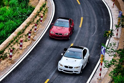 坦白的說,今天的寶馬M3雙門轎跑車碳纖維車頂版和普通版M3試駕車幾乎沒有太多的變化。最大的不同之處就是把車頂的金屬鋼板換成了碳纖維硬頂;其次,這是一輛只跑過不到1000km的新車,輕易便可發揮出更為顯著的性能。由于車頂的變化,這臺寶馬M3的重量比普通版輕了5kg,而它的售價卻為此增加了5000RMB。遺憾之處則是為了性能,你不得不自動放棄那個可以享受日光天窗。而我認為,有了335i敞篷版和Z4的存在,M3完全沒必要用安逸展現自己的價值,BMW M藍盒子賦予它的精神是固化在血液和精神中的——走向輕量化的更高境界,碳纖維材質是M生存的新標準。現在,也隨之出現一個關鍵問題,對于頭頂上減輕的10斤重量,到底能否立竿見影。或者說,能否讓我直接感受到樂趣?