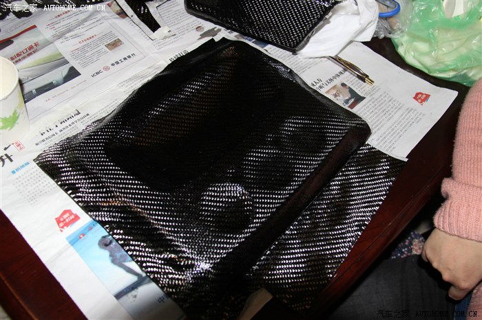 覆蓋碳纖維布的時候要注意,不能用手指用力按表面,否則碳纖維布的纖維很容易被弄亂,弄亂了就不好玩了。。。